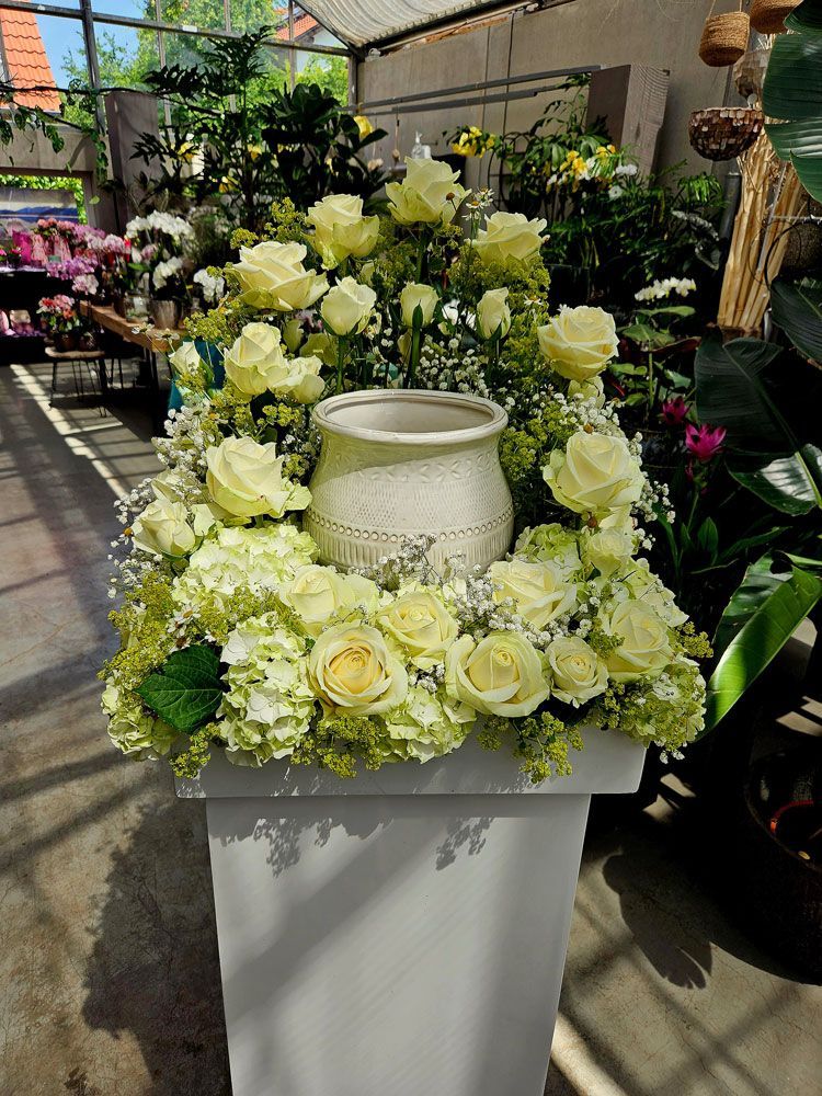 Gerne setzen wir Ihre Wünsche hinsichtlich der Trauerfloristik diskret und geschmackvoll um.